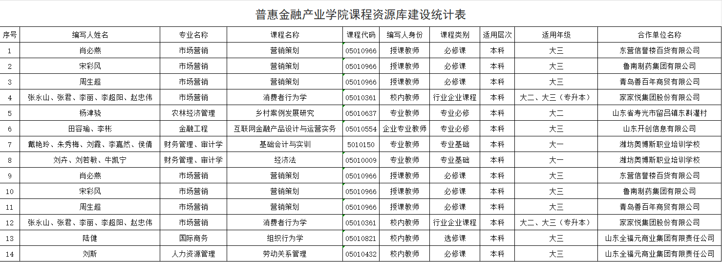 依托普惠金融产业学院优质资源,结合经管类本科专业特色,积极打造行业企业课程资源库、真实项目案例库等。目前,依托普惠金融产业学院在建“两库”项目共计14处。