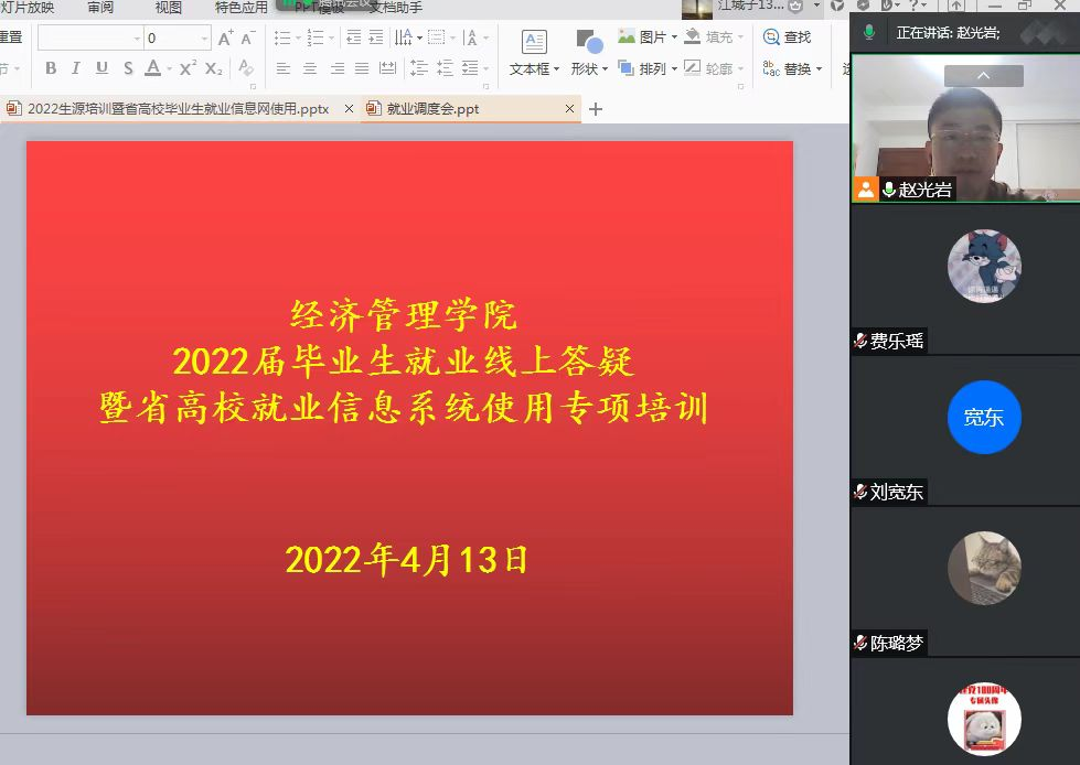 为进一步推进球友会本届毕业生就业工作、全面落实毕业生就业工作职责,球友会于2022年4月12日、13日分别举行2022届毕业生就业工作调度会及2022届毕业生就业线上答疑会。球友会分管就业副书记于江学主持会议,并就现阶段我系毕业生就业现状提出相关可行性对策和建议。