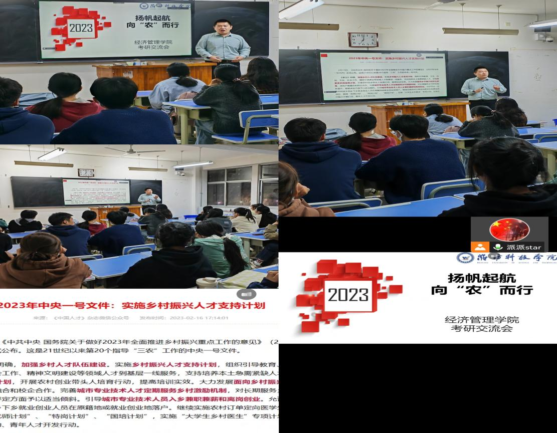 同学们均提前到达教室,座无虚席。同学们对这次交流会抱有极大的热情与积极性,也彰显讲师魅力。此次采用讲座线上线下两种方式同时开展,力争让更多同学参与到此次活动中。经济系的考研团队对这次讲座做了充分准备,给同学们提供了农业考研方面的各种信息数据,着力打造经管学院“金牌考研辅导讲师团”。在讲座过程中,同学们认真听讲并发表自己的观点,氛围十分活跃。同学们纷纷表示受益匪浅,幽默风趣的讲解让同学们在津津乐道的同时,明确了自己的目标。