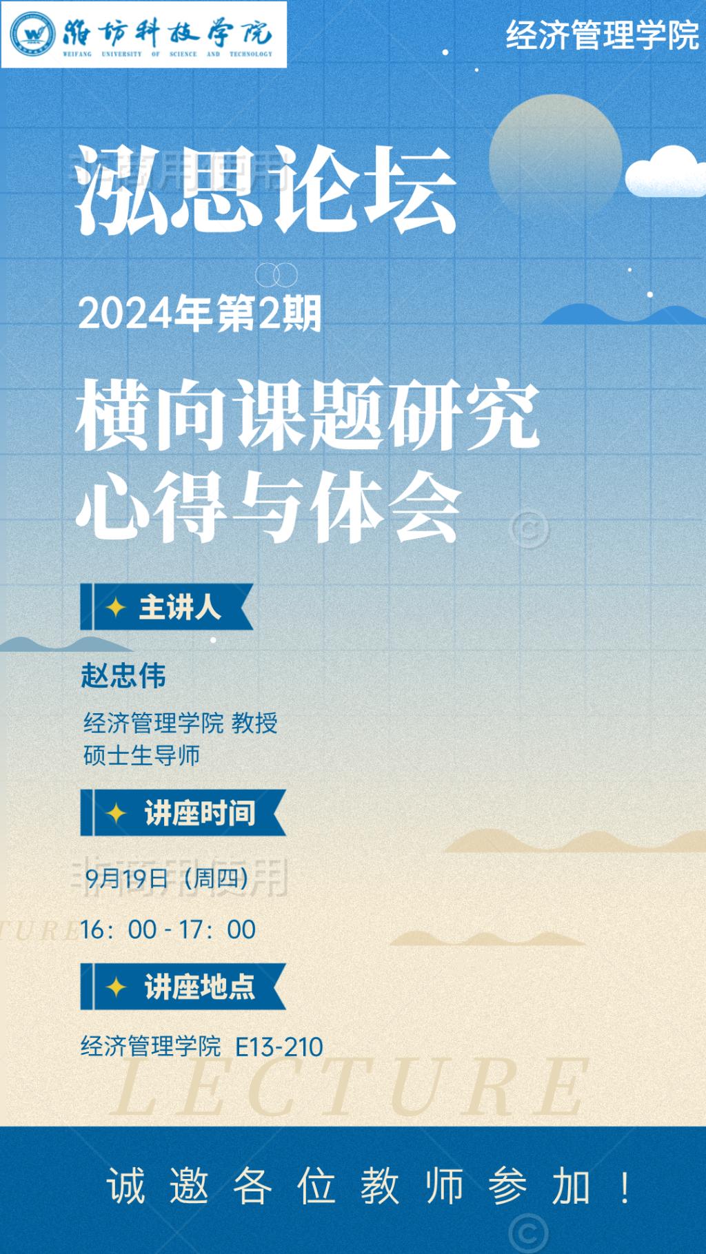 讲座预告 | 2024年第2期“泓思论坛”预告——横向课题研究心得与体会