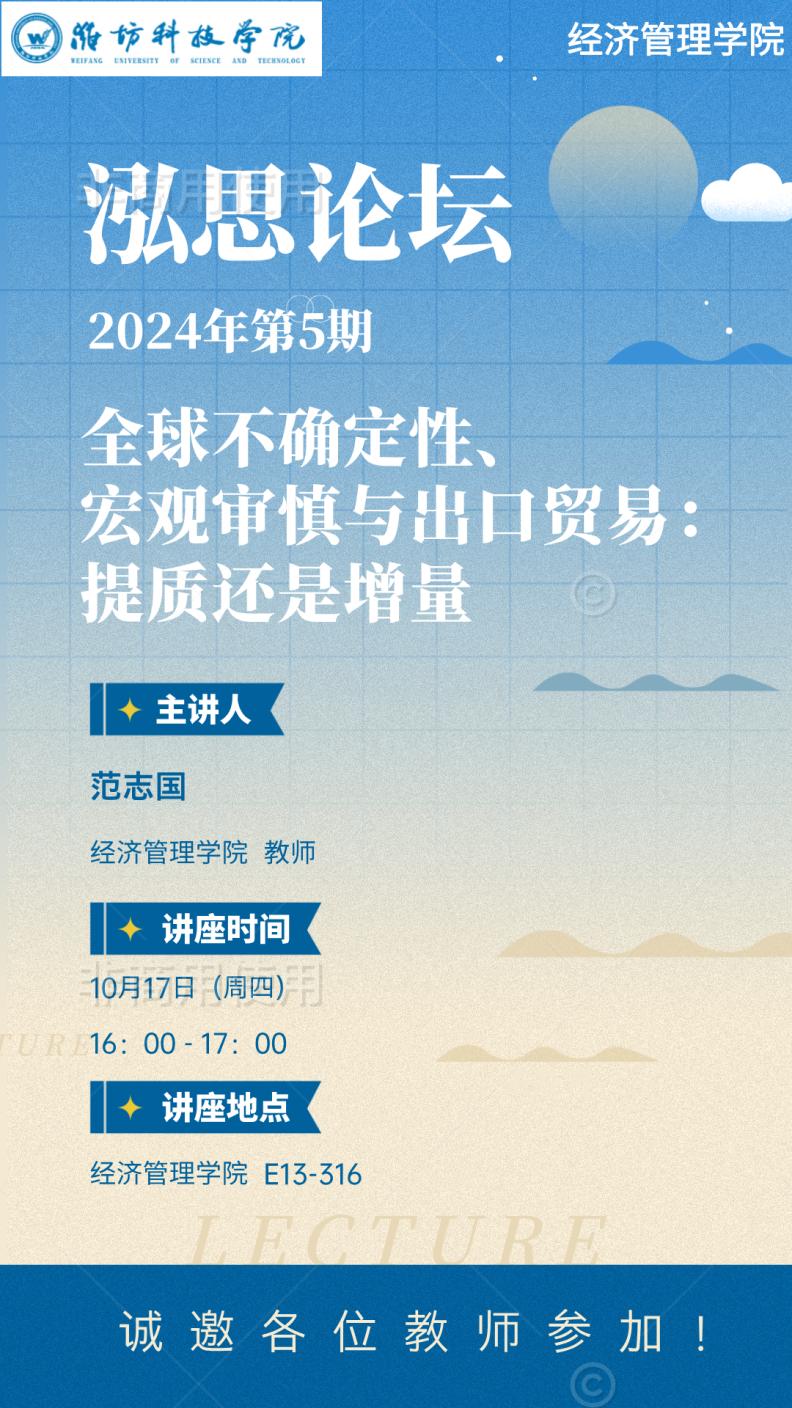 上一条:讲座预告 | 2024年第6期“泓思论坛”预告——国际商务专业教材建设暨国际贸易工作坊研讨 下一条:讲座预告 | 2024年第4期“泓思论坛”预告——浅谈山东省社科成果奖申报
