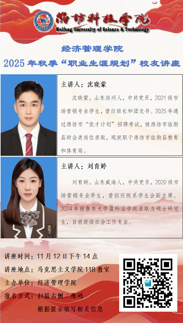 2025年秋季“职业生涯规划”校友讲座将于11月12日下午14点在马克思主义学院118教室举办。