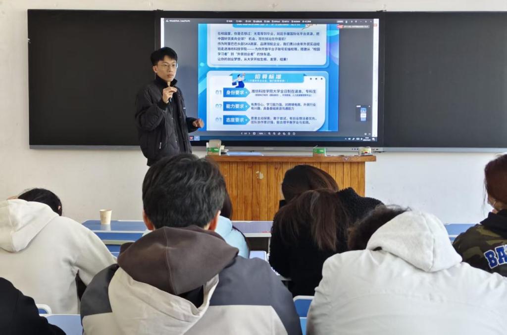 为切实提升人才培养与市场需求的契合度,全力促进2026届毕业生实现更高质量、精准化就业,球友会先后邀请潍坊潍创管理咨询服务有限公司等多家知名企业面向国际商务等专业在校生开展精准化专场宣讲活动。