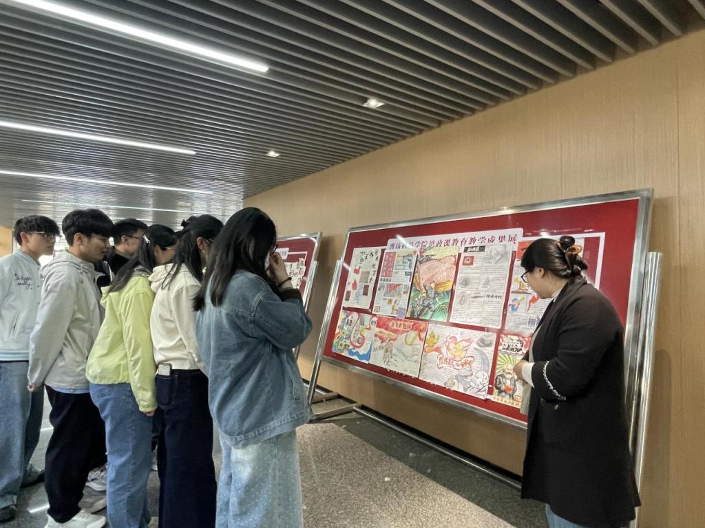 为营造沉浸式思政教育氛围,两院精心打造了思政文化长廊,并面向全体师生开放参观。长廊以“大学生思政教育”为主题,通过图文展板、红色故事、榜样事迹等形式,系统展示了新时代伟大成就与青年榜样风采。长廊内容丰富、形式新颖,使得同学们在驻足观赏中接受文化熏陶,在潜移默化中汲取奋进力量。思政文化长廊的打造,不仅丰富了校园文化载体,更让思政教育从课堂延伸到校园的每个角落,成为师生学习思政、感悟初心的“打卡地”与“充电站”。