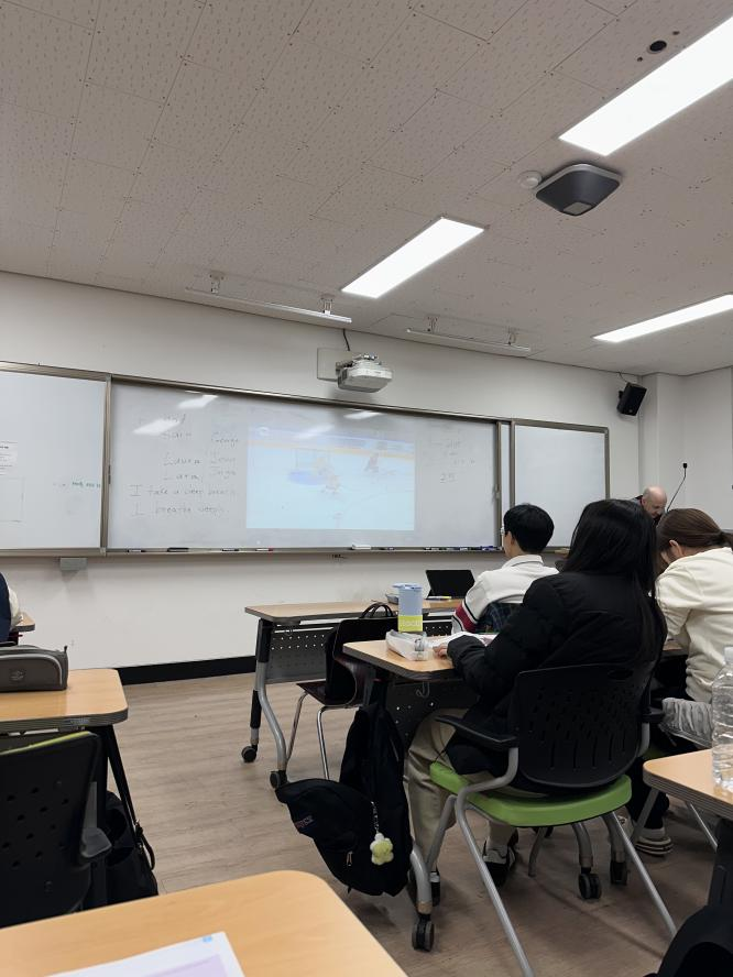 在课堂上认识了可爱的女生朋友,我们会互相分享好吃的零食。来自加拿大的教授很亲切,会在课间给我们播放冰球比赛的视频,这是他们国家的国球,是他们最爱的国民运动。