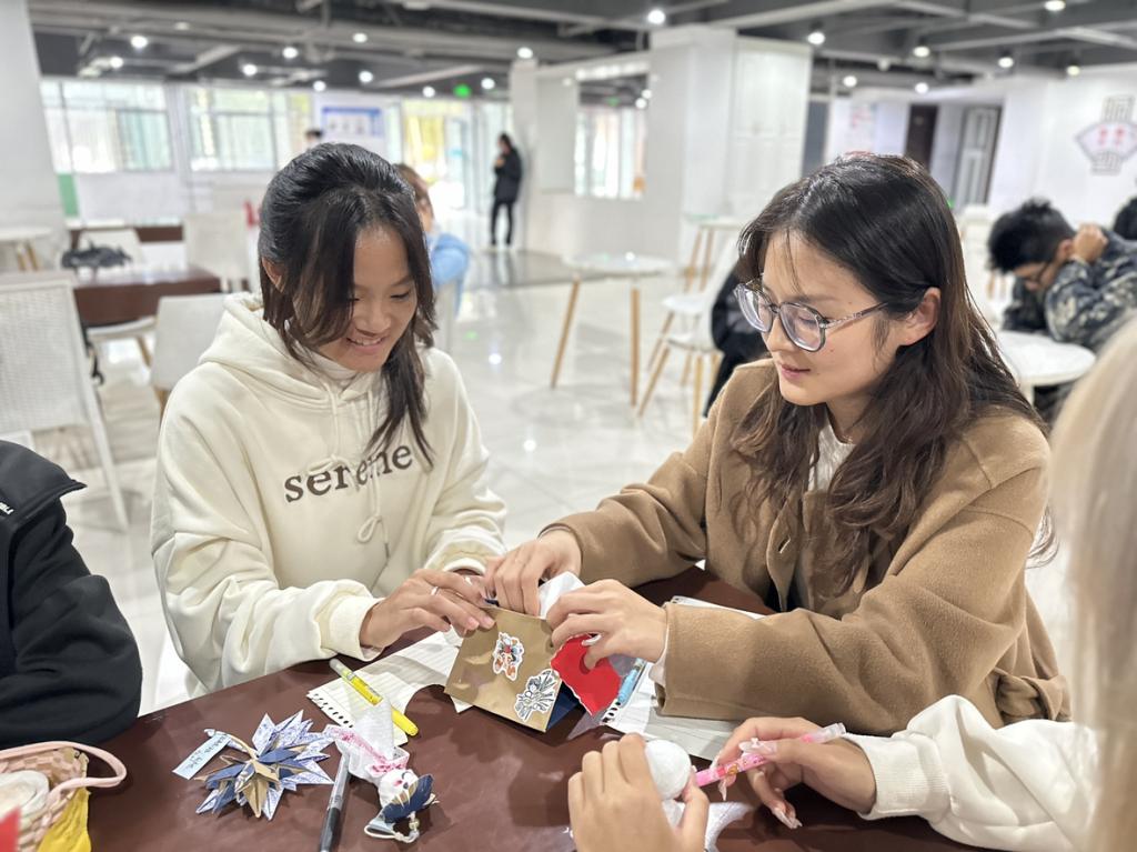 活动中,辅导员与同学们围绕勤俭主题,携手合作,共同开启了一场充满创意与惊喜的变废为宝之旅。面对那些被废弃的材料,老师凭借着丰富的生活经验和知识储备,耐心地引导同学们展开思维的翅膀,发现那些被忽视的废旧物品的潜在价值。同学们热情高涨,创意十足。废旧纸盒在师生的合力创造下有了新的用途,有的被裁剪成精致的收纳盒,边缘工整;有的被拼接成漂亮的花盆,艺韵天成。被丢弃的吸管也重获新生,插上裁剪精致的彩色卡纸,一个个小风车为空间增添生机与活力。他们以行动践行,将一件件废弃物品转化为手工佳作,彰显出对环境保护的坚守与对勤俭的推崇。