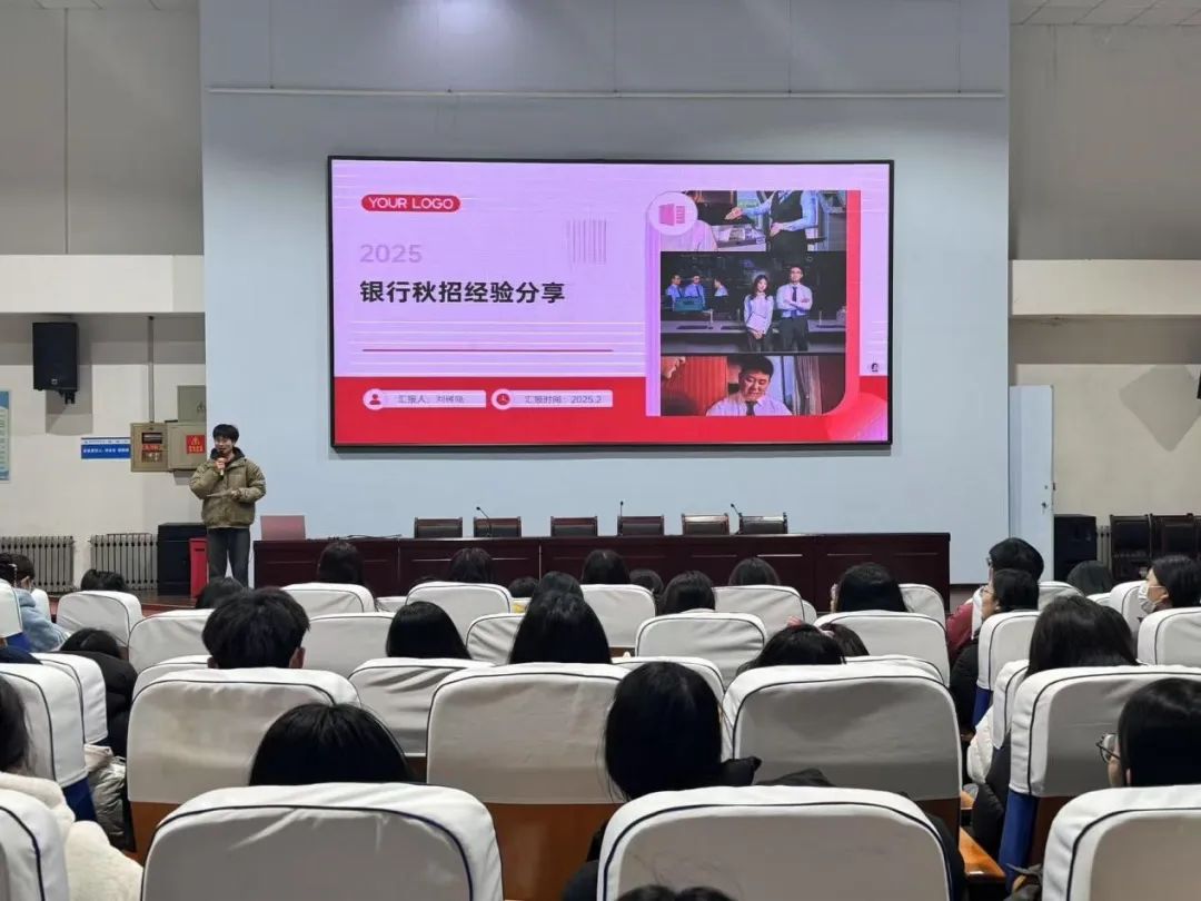 为助力学子深入了解银行秋季招聘流程,提升求职竞争力,球友会于2月25日在经管报告厅举办了银行秋招经验分享会,特邀2021级市场营销专业刘树晓同学担任主讲嘉宾。