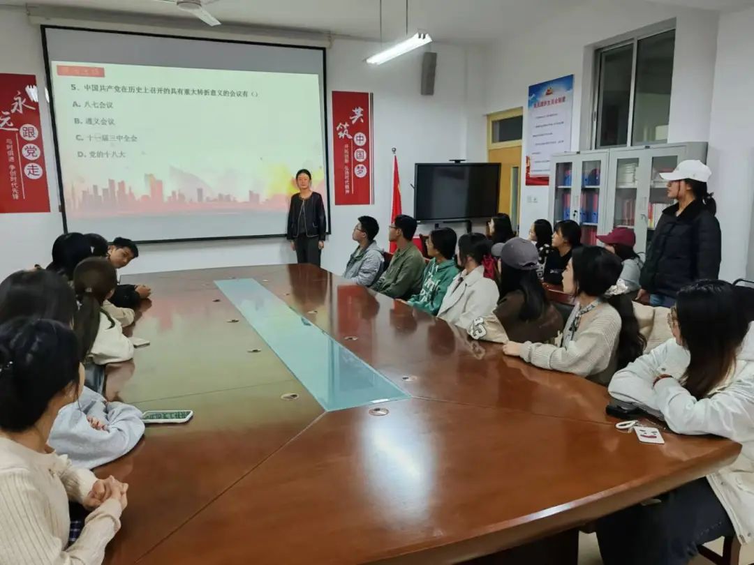 为加深学生对党的历史、方针政策等方面知识的理解,增强学生的爱党爱国情怀,引导学生坚定跟党走中国特色社会主义道路的信念,球友会党支部于10月18日在球友会210党员会议室成功举办了一场以“青春心向党,奋斗新时代”为主题的知识竞赛活动。此次活动不仅是一次对党的理论知识与新时代发展理念的集中学习,更是一场青春风采与智慧碰撞的盛宴。