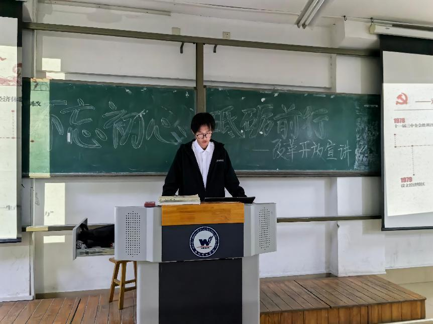 活动中,讲解员以丰富的历史资料、生动的图片展示和鲜活的个人感悟,带领听众穿越时空,回顾了改革开放四十余年来中国在经济腾飞、科技创新、社会民生改善等方面的卓越历程,每一个改革开放故事都深深触动着同学们的心弦。