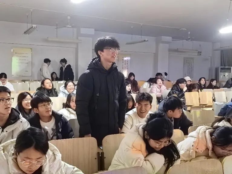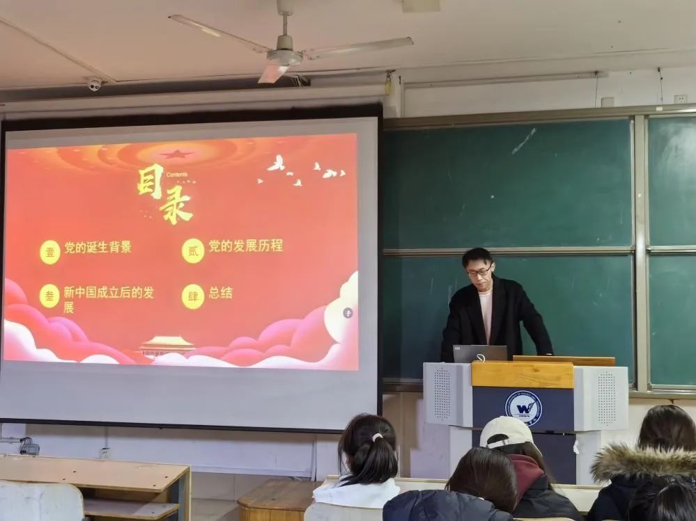 活动开始,学生主讲人以“党史领航员”的身份登场,通过“百年党史时间轴”的动态展示,串联起党的建立、发展与壮大的光辉历程。从南湖红船的星火燎原到脱贫攻坚的壮阔实践,从理论政策的深度解读到“一带一路”的案例分析,宣讲内容既扎根历史厚重感,又紧扣时代脉搏。在“党史快问快答”环节,现场学生争相竞逐,党的理论知识在寓教于乐中悄然入心。中场环节,经典红色影片《觉醒年代》片段放映,李大钊“以青春之我,创建青春之国家”的呐喊与当代经管青年的炽热目光隔空碰撞。 观影后,学生们围绕“数字化时代如何践行党的宗旨”、“乡村振兴中的青年担当”等议题展开深度探讨。学生代表们以“青年说”形式分享感悟。“党的理论不是空中楼阁,它教会我们如何在‘内卷’中保持定力,在‘躺平’声里坚守责任”。台下学生发言引发共鸣。主讲人总结道:“本次活动不仅是知识的传递,更是一次信仰的对话。我们希望通过青春化的表达,让红色基因成为青年成长的精神坐标,激励他们在新征程上以初心筑梦,用实干绽放芳华。”