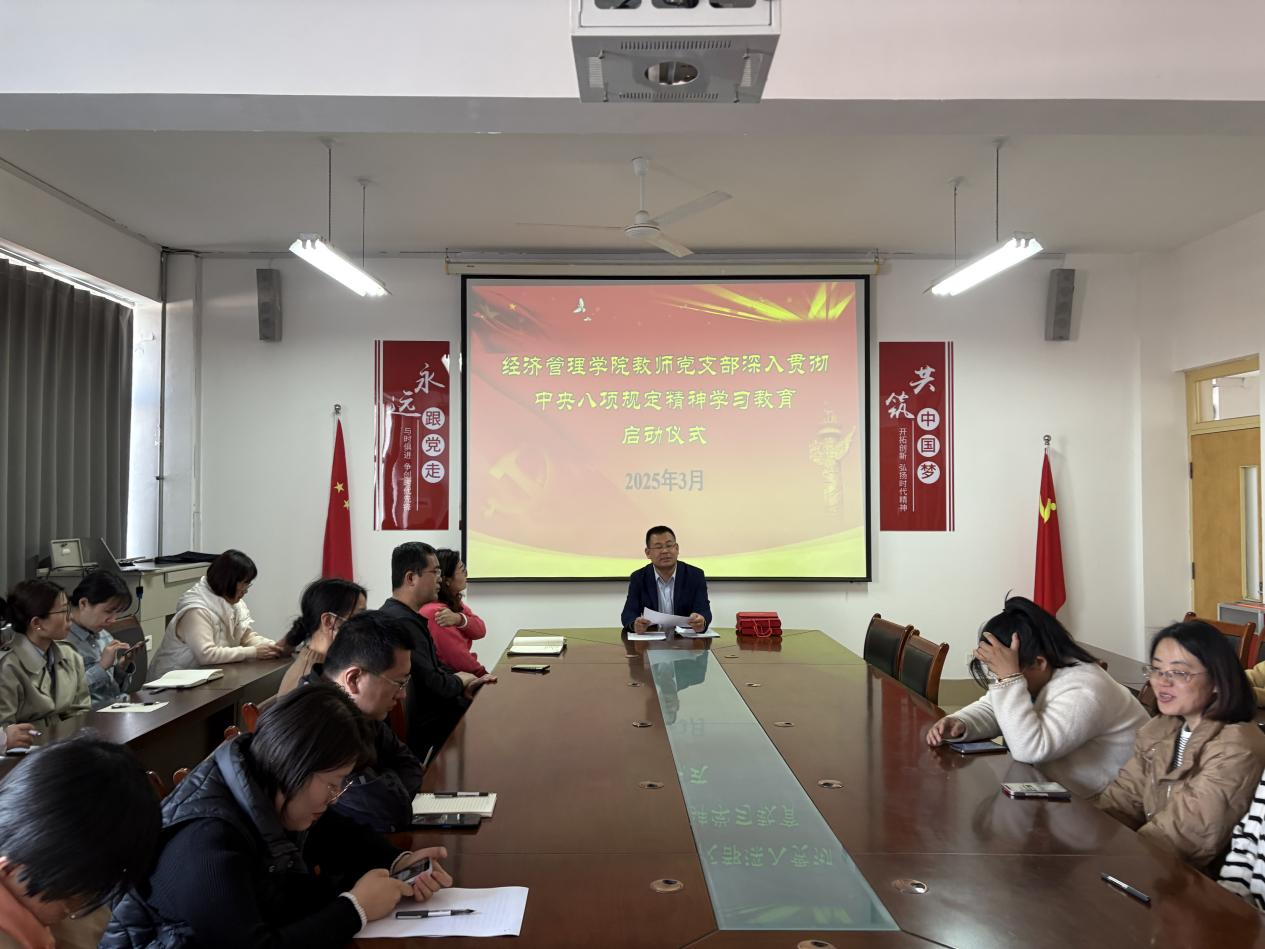3月27日下午,球友会党委在 210 会议室召开深入贯彻中央八项规定精神学习教育启动部署会。学院党委书记于江学主持会议并作动员讲话,学院党委委员、全体党支部书记参会。