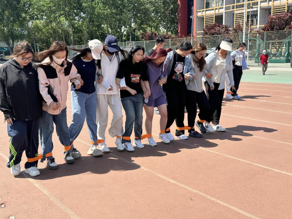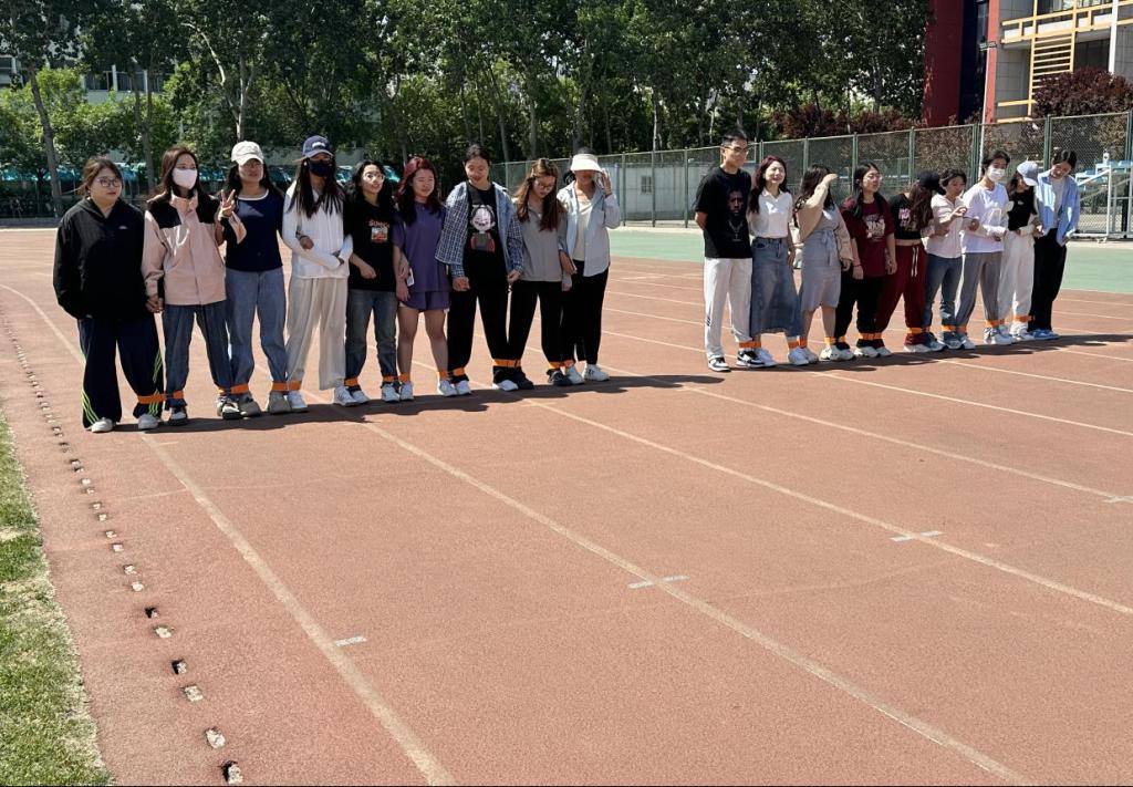 N人N足小游戏采取组队作战的方式,每队人数2-10人不等,相邻的脚绑在一起,比赛开始,向终点跑去或走去,耗时最短的队伍获胜。该活动能极大程度考验同学们的反应能力,提高了同学们的合作能力。