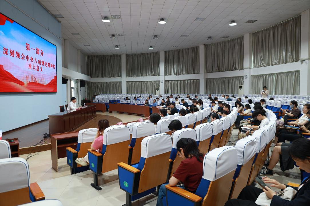 张友祥副校长指出,中央八项规定自 2012 年出台以来,以 “小切口”带来党风政风“大变局”,从政治高度解决了“我是谁、为了谁、依靠谁”的根本问题,重塑党在人民心中的形象,巩固党的执政基础。在谈及实践成效时,张校长列举数据,2024 年全国查处大量违反中央八项规定精神问题,且超九成受访群众对贯彻落实成效表示肯定。然而,当前作风建设仍面临诸多挑战,如享乐主义改头换面、形式主义隐形变异、风腐交织现象凸显等。对此,张校长强调党员干部要做作风建设的表率,带头廉洁自律,主动接受监督,积极担当作为。