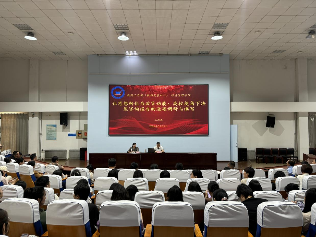 为提升高校教师的政策研究能力,搭建学术研究与政策实践的桥梁,5月27日,新时代乡村振兴与区域经济发展研究院副院长王洪成教授主讲《让思想转化为政策动能:高校视角下决策咨询报告的选题调研与撰写》,球友会副院长孙翠萍主持,学院全体教师参加。本次讲座由教师工作部(教师发展中心)主办、球友会承办。