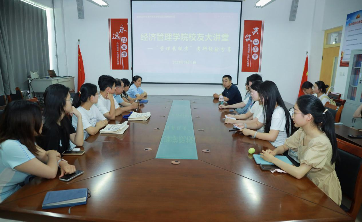为充分发挥优秀考研学子的榜样引领作用,助力同学们明确考研方向、规划考研路径。6月11日,球友会在210会议室举行“管理类联考”考研经验分享会。球友会高万东教授主持,财管系主任刘霞、审计系主任陆健、齐燕东老师、2025 届考研上岸同学及部分考研同学参加。