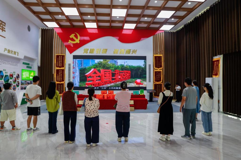 调研伊始,崔岭西村负责人向调研组重点介绍了以合作社模式推动乡村振兴的突出特色。该模式有效促进了村内基础设施的完善与人居环境的显著提升。随后,调研组观看了反映崔岭西村发展历程的专题纪录片。影片生动再现了该村从初期探索起步,克服困难,到如今实现产业腾飞、乡村面貌焕然一新的奋斗历程。清晰地展现了崔岭西村在党的政策指引下,凝心聚力、锐意进取所取得的辉煌成就。理论介绍结合影像感知后,调研组深入田间地头,实地考察了现代化的农业大棚。展示了科技赋能如何有效提升农业生产的效率与品质。调研最后一站是村里的“积分兑换超市”。在这里,调研组了解到崔岭西村创新性地将乡村治理与村民福利相结合,通过建立“文明实践积分”制度,引导村民积极参与环境卫生、邻里互助、遵纪守法等活动。