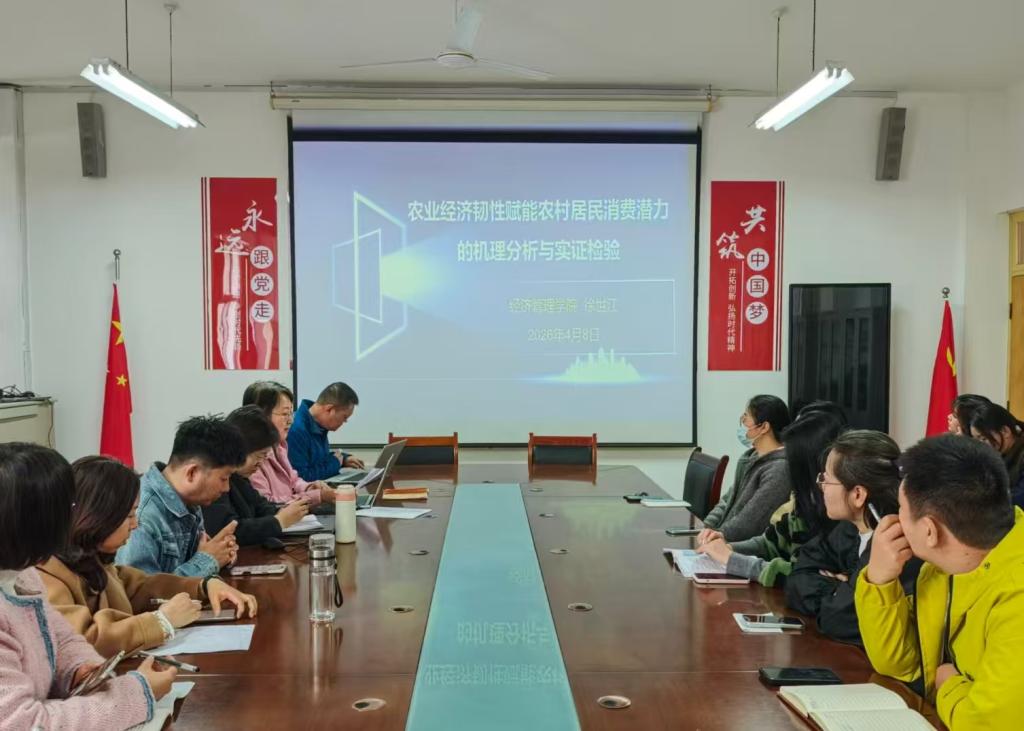 为深化农业经济领域学术研究,促进学院科研交流,球友会于4月8日在210会议室举办“农业经济韧性赋能农村居民消费潜力的机理分析与实证”专题讲座,徐世江教授应邀主讲,经济系全体教师参加。