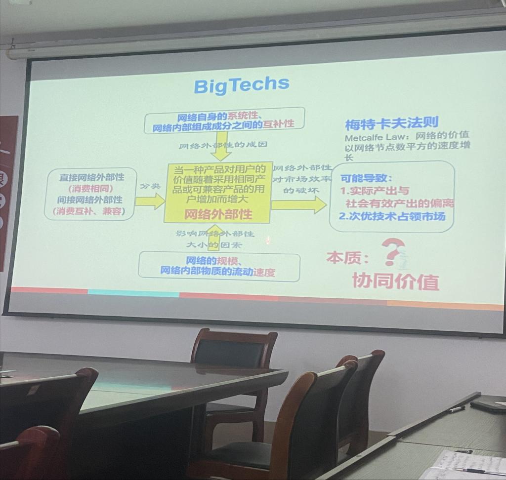 谢教授首先分享了关于“市场”、“平台”、“企业”的经济学概念的内涵特征,随后引出BIG-TECFES的概念与特征,详细分析当前BIG-TECFES的发展现状,然后重点讲解了阿里集团、苹果集团涉足金融领域的现状,最后重点分析了BIG-TECFES涉足金融领域后产生的外部性特征及解决对策。