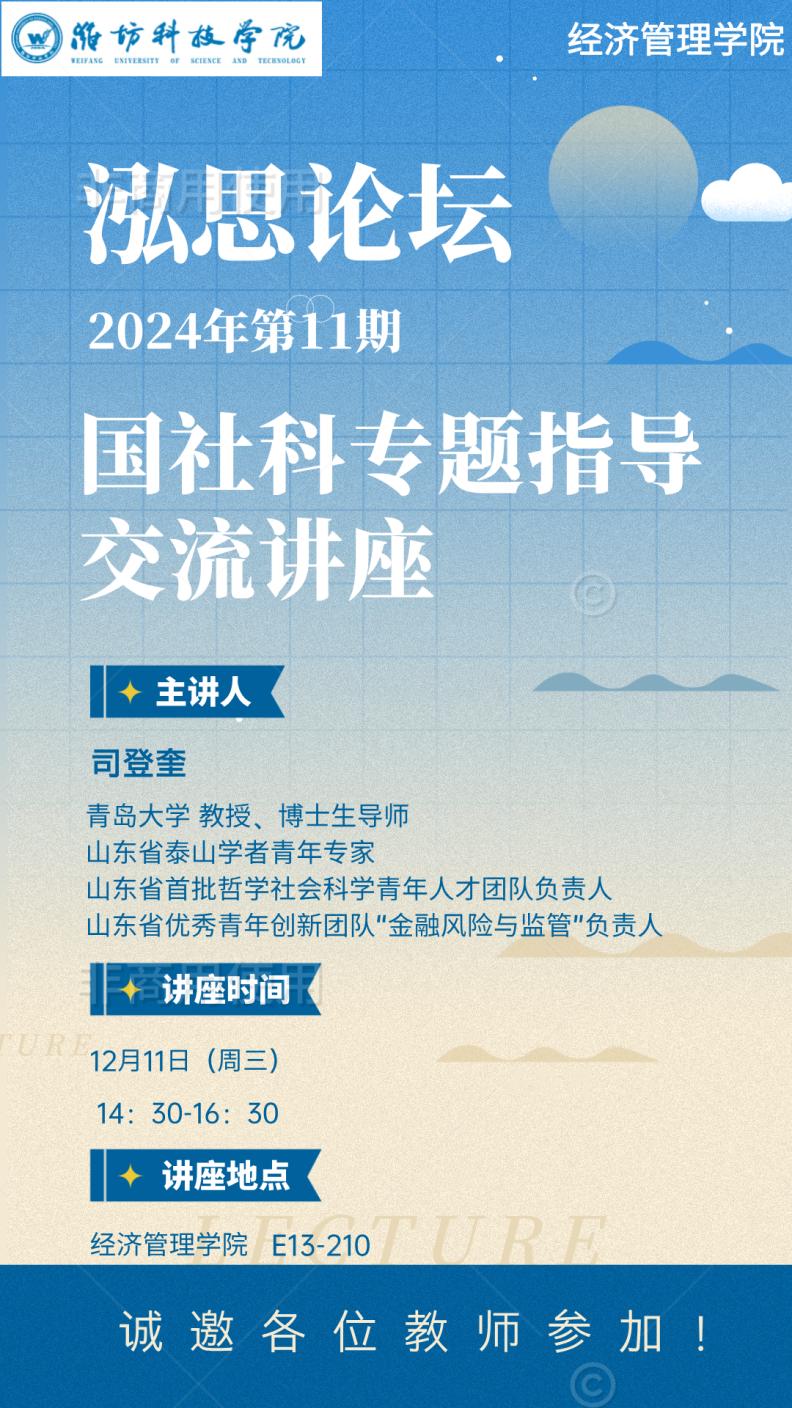 讲座专家简介:司登奎,经济学博士,现为青岛大学教授,博士生导师,山东省泰山学者青年专家、山东省首批哲学社会科学青年人才团队负责人、山东省优秀青年创新团队“金融风险与监管”负责人,主要研究方向为金融经济学、国际金融、公司金融。研究成果在《中国工业经济》、《世界经济》、《金融研究》、《财贸经济》、《统计研究》、《管理科学学报》、Journal of Economic Behavior & Organization、China Economic Review、Economic Modelling、Pacific-Basin Finance Journal、International Review Financial Analysis等CSSCI、SSCI期刊上发表学术论文90余篇;主持国家社科基金一般项目、国家社科基金青年项目、国家社科基金重大项目子课题(2项)、国家统计局重点项目、国务院研究专项等科研项目16项;获山东省社会科学优秀成果奖二等奖、山东社会科学学科新秀奖、山东省高等学校优秀成果奖一等奖等荣誉22项;研究成果获正部级领导肯定性批示2项。