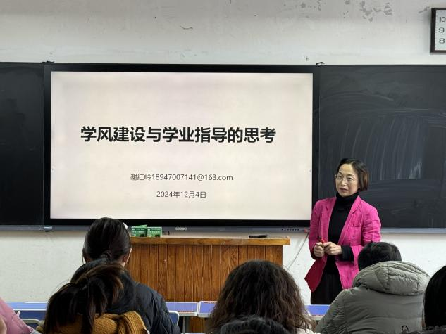 讲座伊始,谢红岭教授带领辅导员们重温了高校辅导员的责任与使命,并强调辅导员应成为大学生的人生导师和知心朋友。随后,谢红岭教授向辅导员分享了三点宝贵经验:学生培养的重要性、学会听取意见和建议、帮助是最好的教育。接着,谢红岭教授又从四个方面进行工作经验分享:其一,树立育人导向,理念维度引领学风建设;其二,工作明晰问题导向,保障维度做到精准施策;其三,做到精准预判,目标维度聚集过程管理;其四,强化专业实践,方法维度促进全面发展。讲座最后,谢红岭教授特别强调了团队协作能力的重要性,并鼓励辅导员们要共享资源、共担责任、共同进步。通过谢教授的精彩分享,辅导员们对学风建设和学业规划有了更加深入的认识和理解。