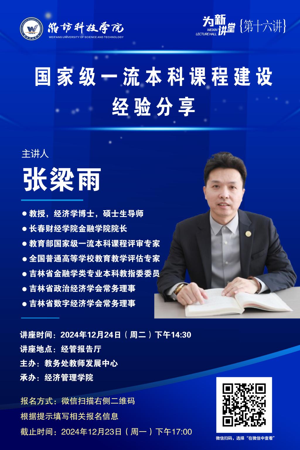 讲座专家简介:张梁雨(男,1984-),教授,经济学博士,硕士生导师,现任长春财经学院金融学院院长,教育部国家级一流本科课程评审专家,全国普通高等学校教育教学评估专家,吉林省金融学类专业本科教指委委员,吉林省政治经济学会常务理事,吉林省数字经济学会常务理事。