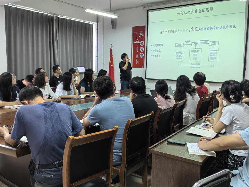 讲座伊始,孙翠萍详细介绍了王常林老师的学术背景。随后,王老师在讲座中强调,课题选题应紧密对接国家重大战略需求,突出政策敏感性与现实关切。针对“起步阶段”的研究人员,他建议立足现有基础,选择切入点明确、操作性强的具体问题,依托扎实的调研与数据积累形成研究特色。在谈到申报书撰写时,王老师多次以本人获批的课题活页为例,细致解析申报书的逻辑结构与撰写要领。他指出,申报书应力求科学规范:研究背景须依循“政策引领—问题导向—研究回应”的脉络展开;文献综述应超越简单罗列,注重观点批判与理论对话;并需分别阐明课题的理论价值与实践价值。