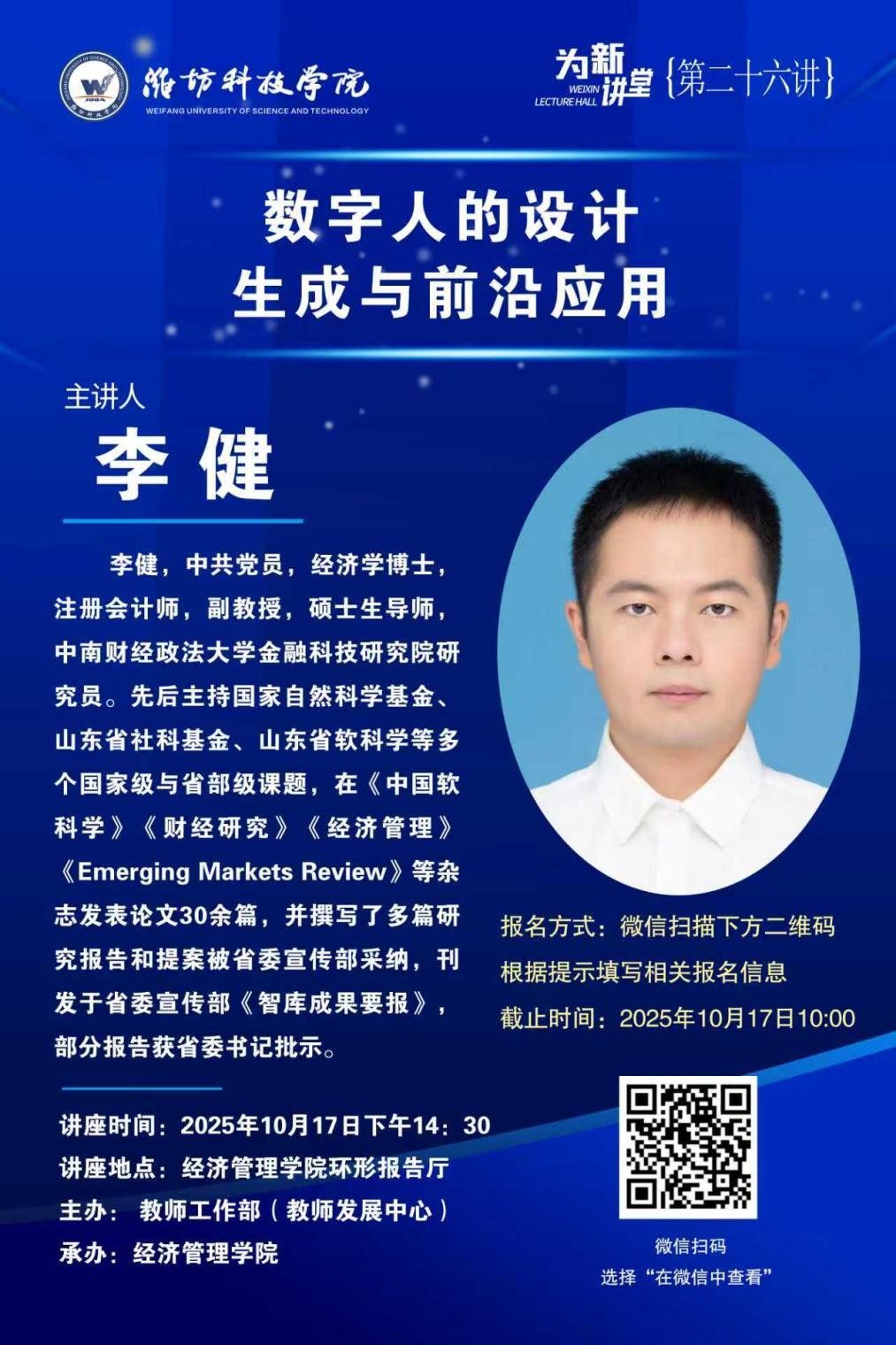 讲座通知|“为新讲堂”第二十六讲-数字人的设计生成与前沿应用