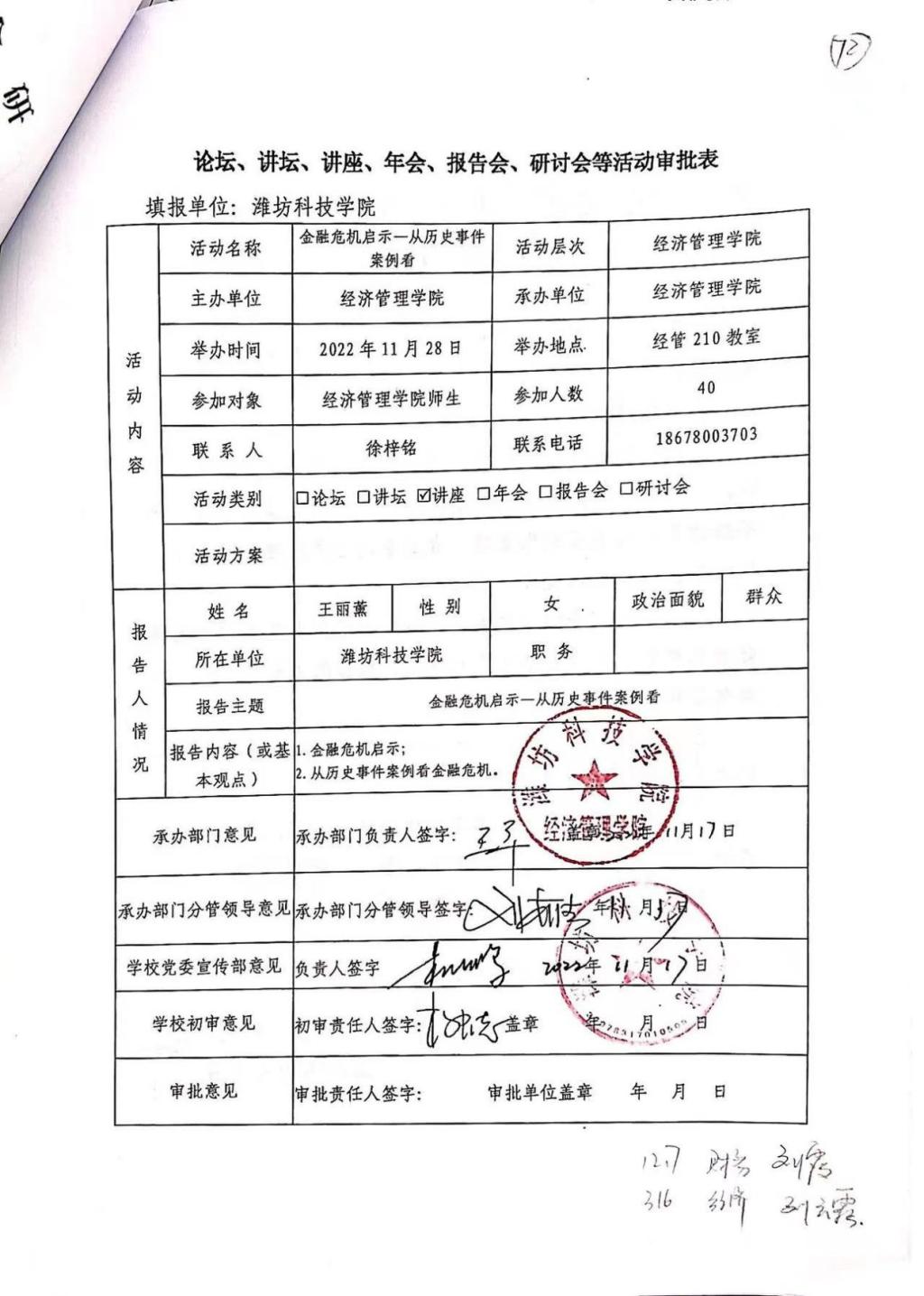 通过本次讲座活动,各位教师和同学们都受益匪浅,认识到我们要合理面对风险,各位同学也要切实提高自身的专业能力和综合素质。