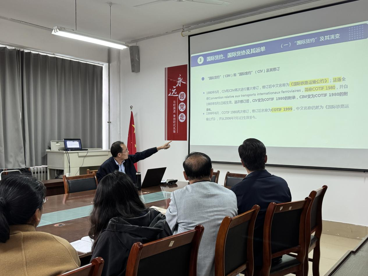 讲座内容包含三个部分:一是国际商务专业课程教材一体化建设;二是国际贸易工作坊;三是作为工作坊研讨内容:国际货约、国际货协及其运单。