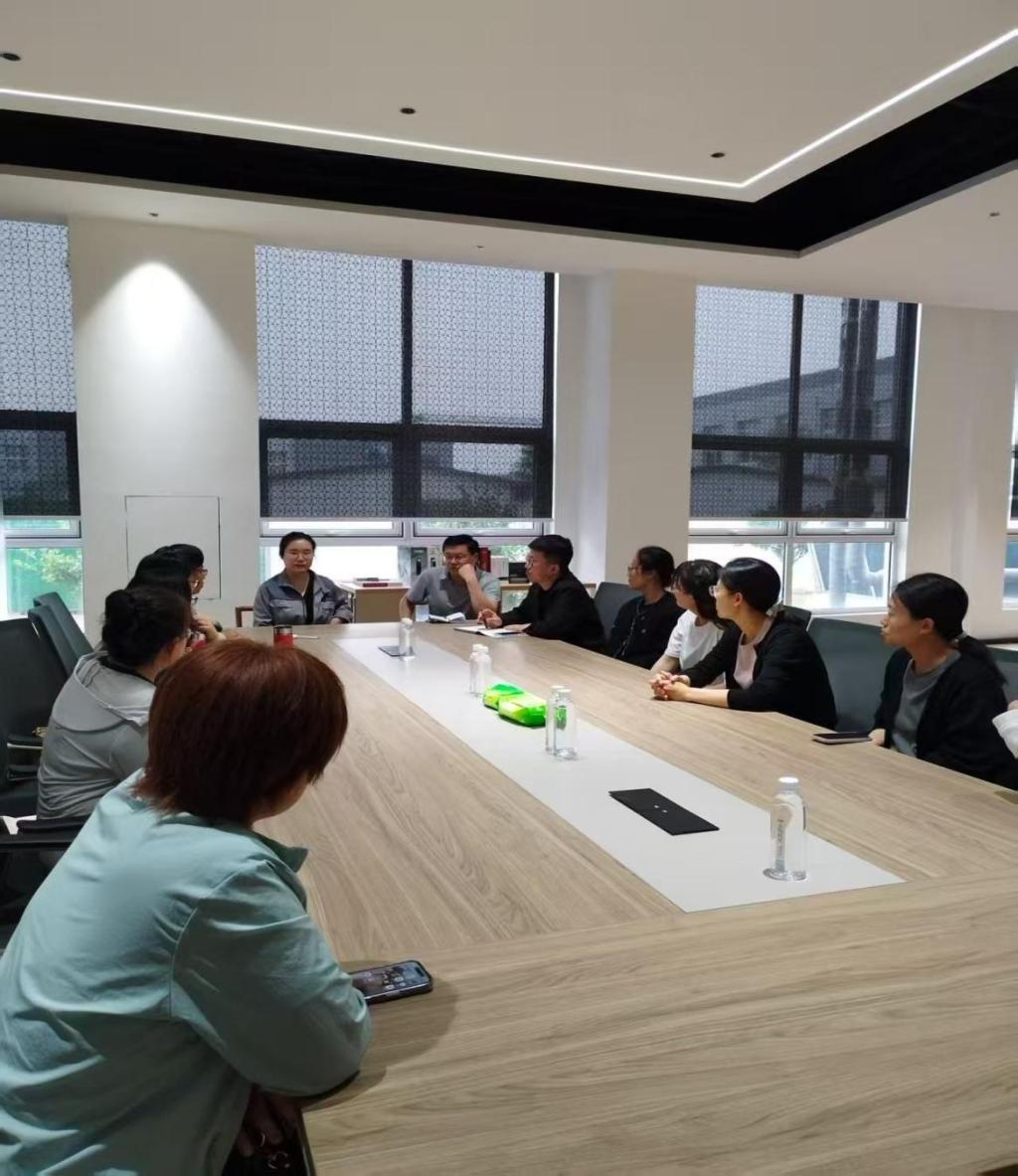 首先,玉马遮阳科技股份有限公司相关负责人对市场营销系教师团队的到来表示热烈欢迎,重点分享了高端定制化遮阳产品案例、智能家居场景化解决方案及海外市场本土化运营经验。教师团队系统了解了玉马遮阳在遮阳新材料研发、智能遮阳系统设计以及全球化市场布局等方面的核心技术和最新成果。李超阳主任指出,这些案例可作为《市场调查与预测》《营销策划》等课程的鲜活素材,助力教师突破传统理论教学的局限性。随后,教师团队在企业现场开展了教研活动,教师们围绕如何将企业案例与市场营销专业课程相结合、如何在教学中融入行业前沿技术和市场需求等议题展开了深入讨论。座谈会上,李超阳主任首先介绍了球友会市场营销系的基本情况、专业特色和人才培养成果。他指出,市场营销系始终以服务企业需求为导向,在品牌营销、市场拓展等领域积累了丰富的教学与实践经验,希望通过此次交流,进一步深化与企业的合作,推动产教融合,为学生提供更贴近市场实际的教学内容和实践机会。在交流中,玉马遮阳科技股份有限公司表达了与高校合作培养专业人才的意愿。市场营销系教师则从专业教学角度出发,提出了将企业案例融入课程教学、开展实践教学项目合作以及建立学生实习基地等合作建议。
