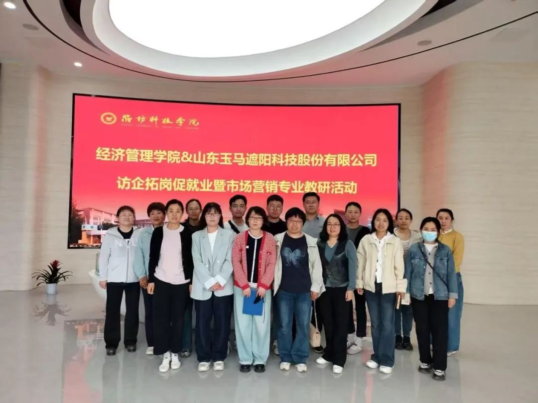 2025年5月7日下午,市场营销系李超阳一行等15人,前往玉马遮阳科技股份有限公司开展教研活动。此次活动以“把教研室搬到基层、搬到企业现场”为创新形式,旨在通过实地调研与现场研讨,提升教师集体教研能力,提升教学水平,进一步提高服务社会的能力。