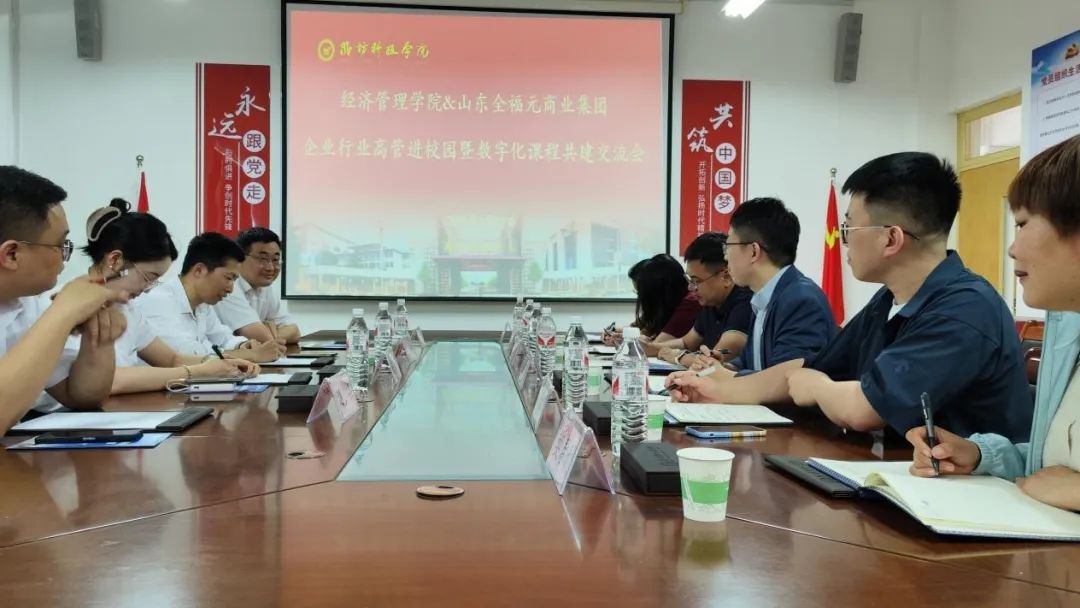 为深化校企合作,推动教科研习一体化进程,加速数字化课程共建,积极培育数智新媒体涉农营销人才,5月12日,山东全福元商业集团新零售业务部部长王尚光、人力资源部部长王利等一行应邀到我院开展校企合作暨数字化新媒体营销课程共建专项交流会。